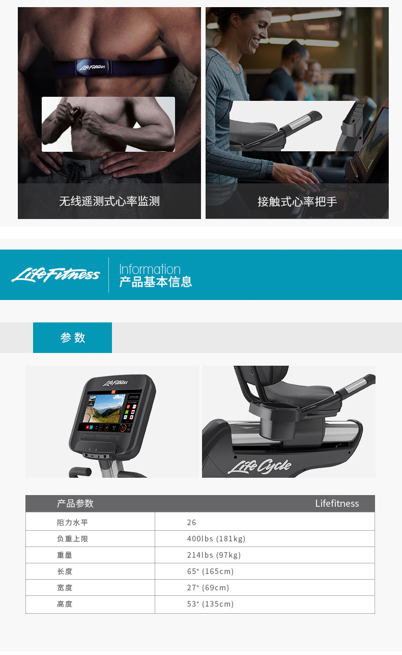LifeFitness/力健健身車美國(guó)進(jìn)口家用白金俱樂部靠背自行車PCSR
