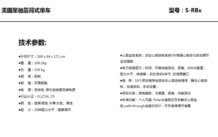 STAR TRAC/健身車星馳靠背式臥式磁控靜音訓(xùn)練器材S-RBx
