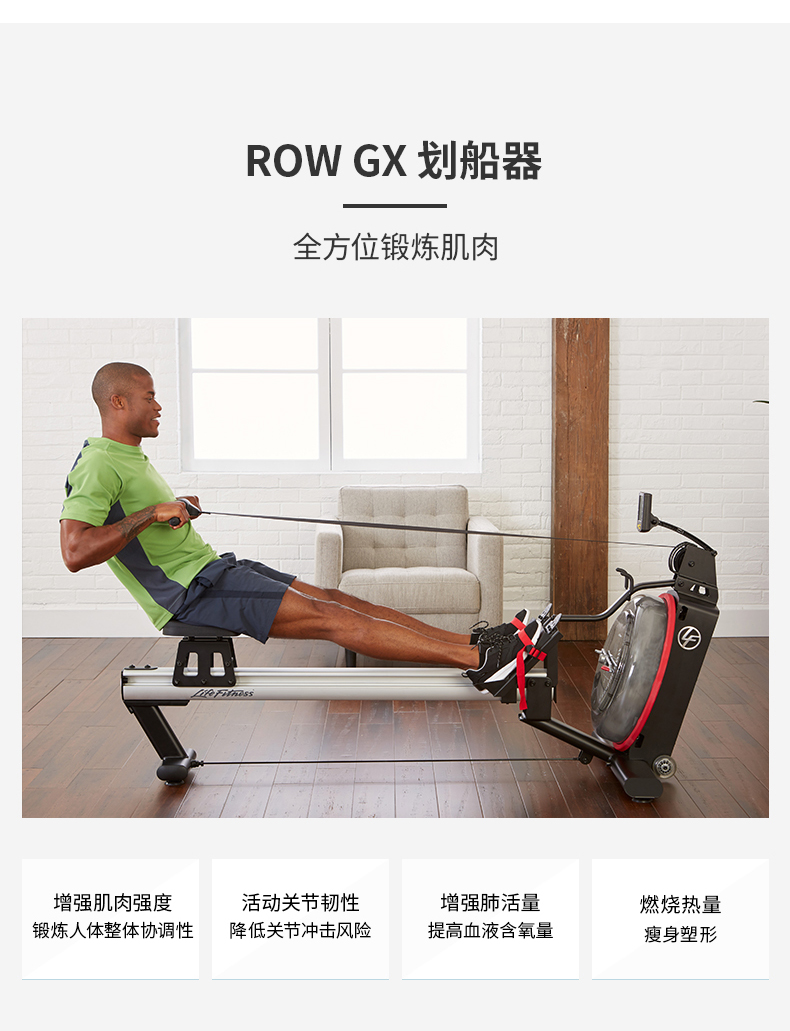 力健旗艦店LifeFitness水阻劃船機(jī)金屬單軌健身器材可折疊GX