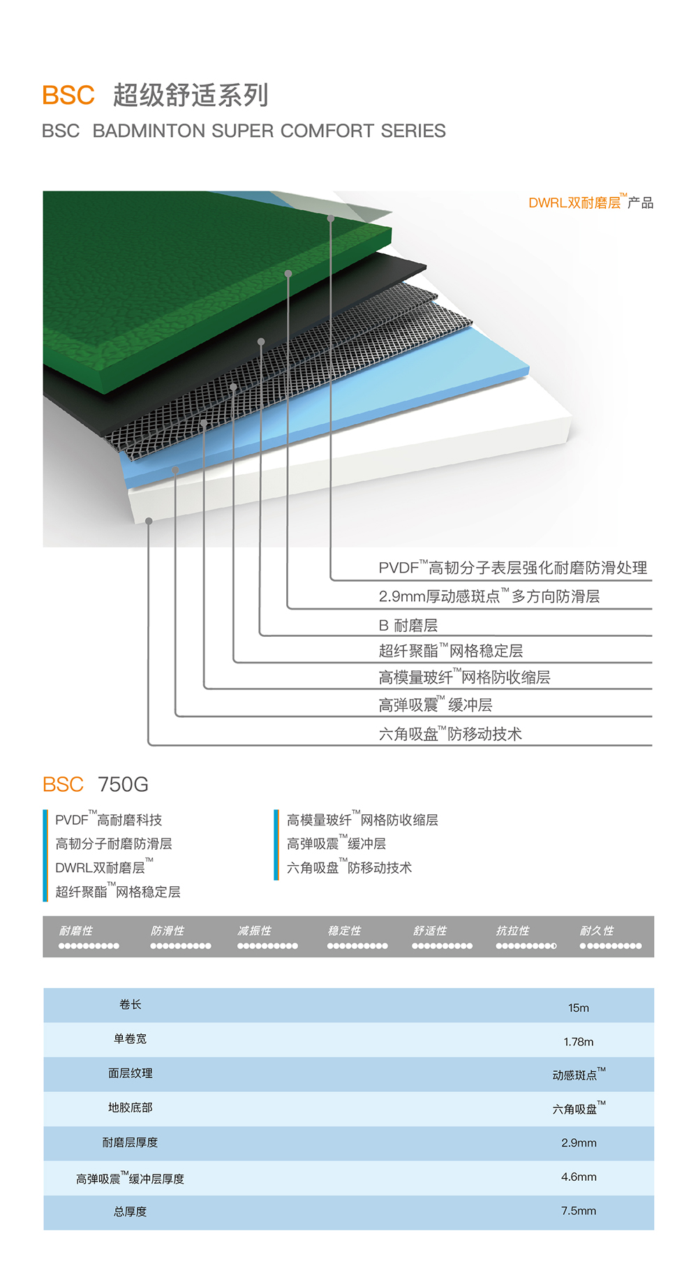 天速羽毛球PVC運(yùn)動(dòng)地膠BSC750